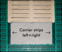 The Concrete Inserts of matching dimensions are placed onto specially designed carrier strips between the remaining plastic slats.